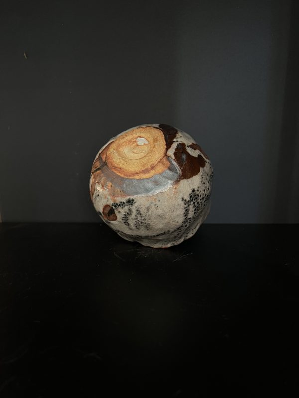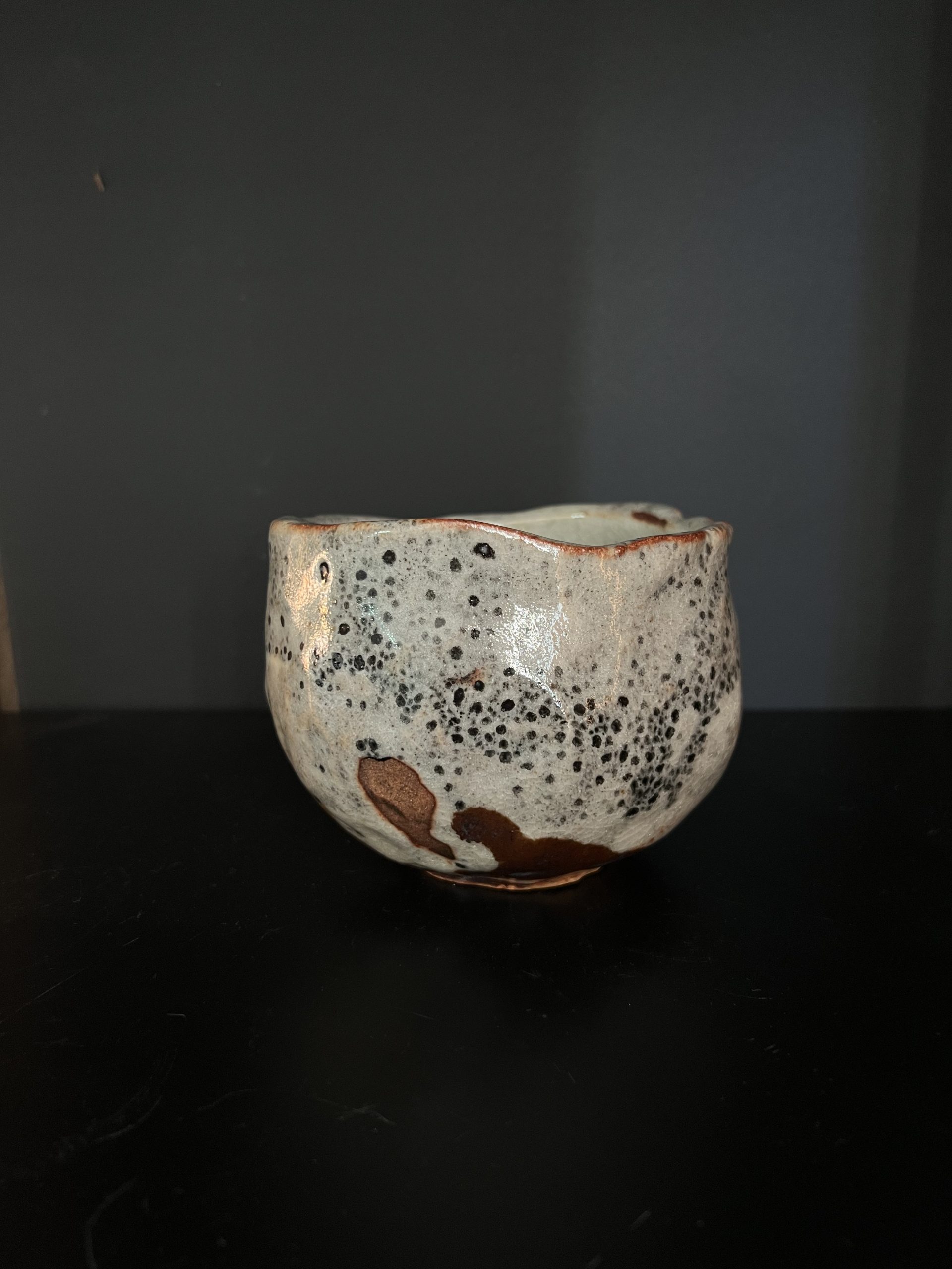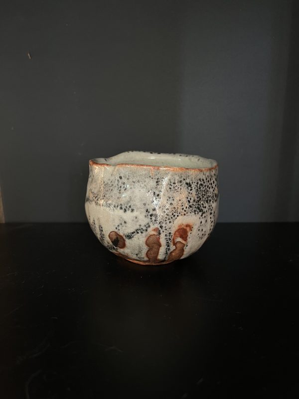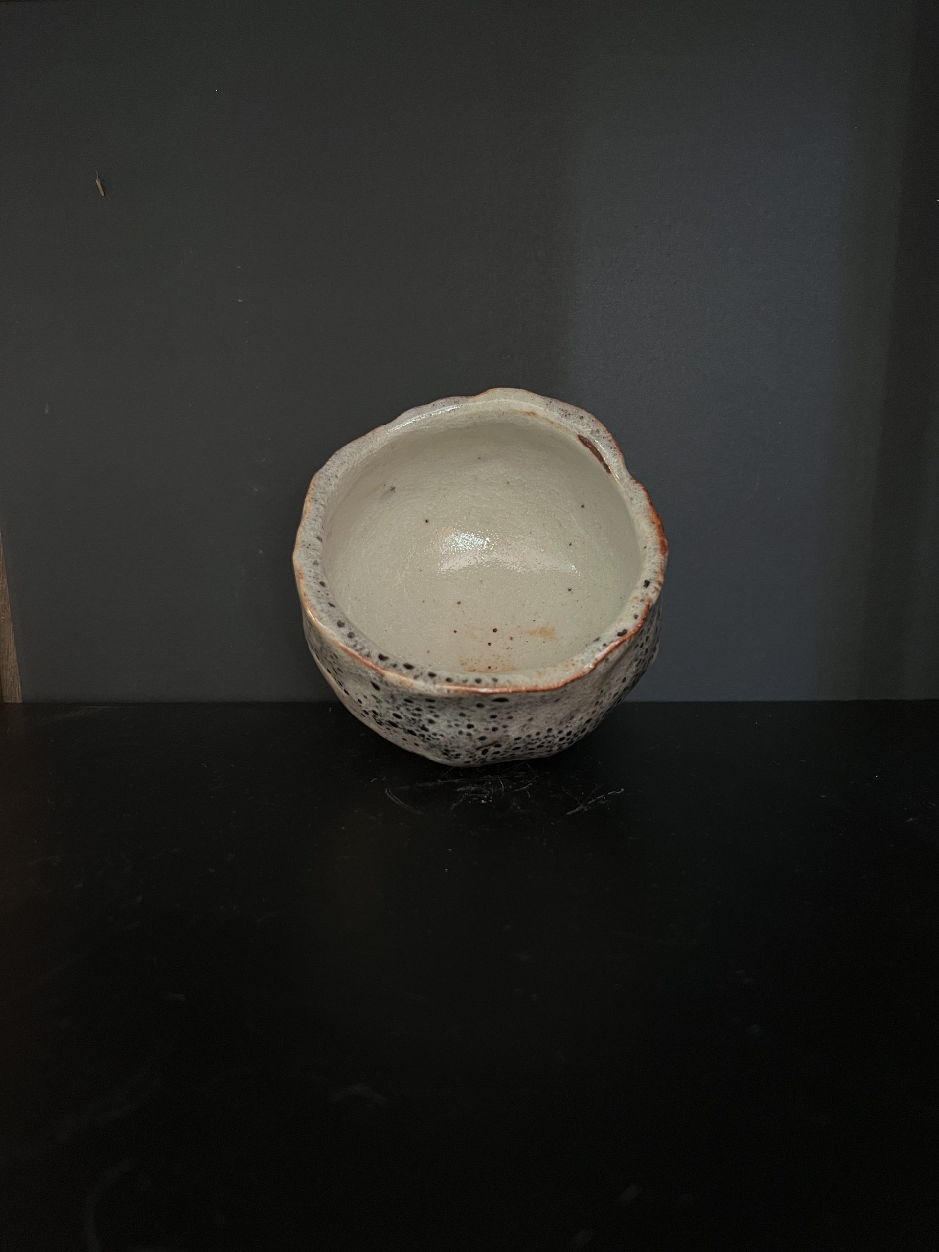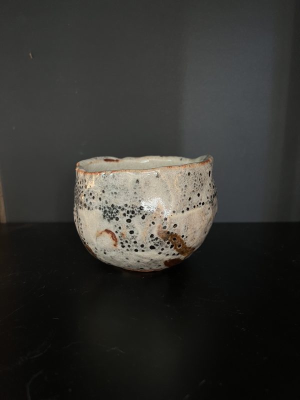 Chawan realizado sin torno alfarero, de forma totalmente manual. Esmalte shino, horno de gas en atmósfera reductora 1260 grados. Medidas: Altura: 8’5cm Ancho: 11cm Pie: 5’5cm Peso: 430 gramos